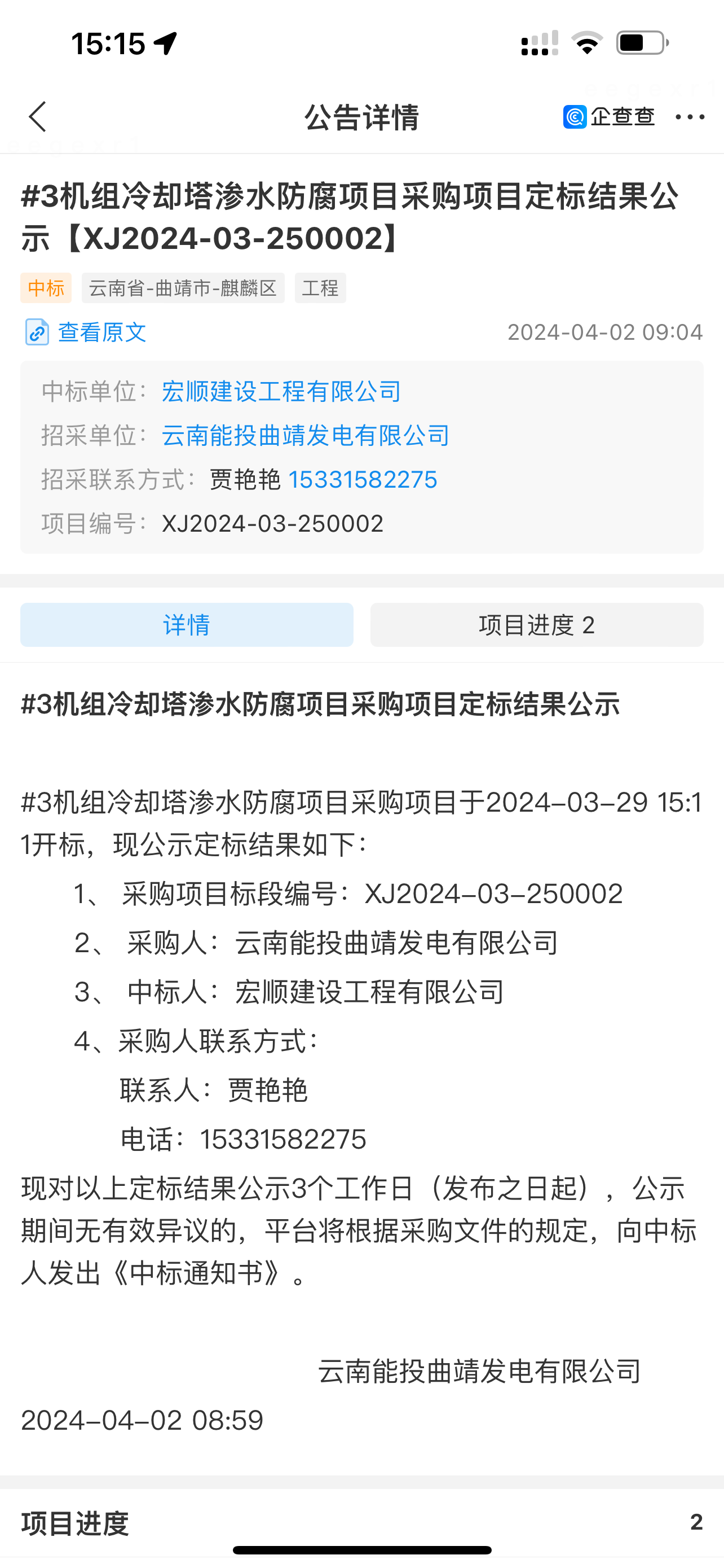 熱烈祝賀我公司中標(biāo)云南能投曲靖發(fā)電機(jī)組冷卻塔內(nèi)防腐項(xiàng)目